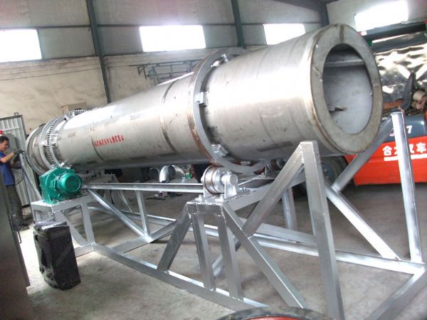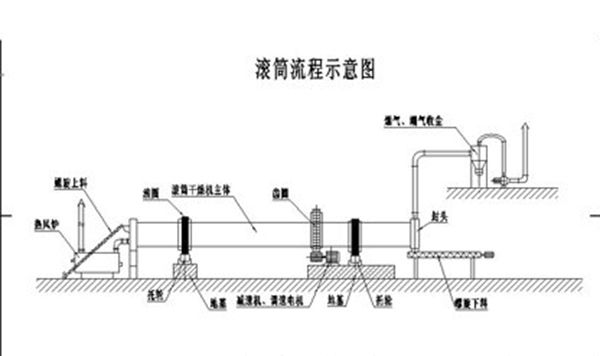 石英砂由皮帶輸送機或斗式提升機送到料斗,然后經料斗的加料機通過加料管道進入加料端。加料管道的斜度要大于物料的自然傾角,以便物料順利流入干燥器內。干燥器圓筒是一個與水平線略成傾斜的旋轉圓筒。物料從較高一端加入,載熱體由低端進入,與物料成逆流接觸,也有載熱體和物料一起并流進入筒體的。隨著圓筒的轉動物料受重力作用運行到較底的一端。濕物料在筒體內向前移動過程中,直接或間接得到了載熱體的給熱,使濕物料得以干燥,然后在出料端經皮帶機或螺旋輸送機送出。在筒體內壁上裝有抄板,它的作用是把物料抄起來又撒下,使物料與氣流的接觸表面增大,以提高干燥速率并促進物料前進。載熱體一般分為熱空氣、煙道氣等。載熱體經干燥器以后,一般需要旋風除塵器將氣體內所帶物料捕集下來。如需進一步減少尾氣含塵量,還應經過袋式除塵器或濕法除塵器后再放排放。